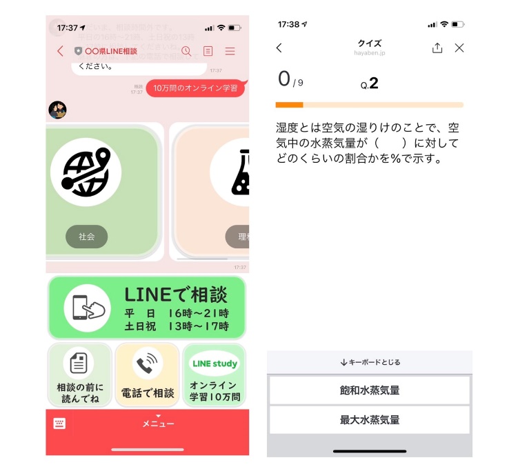 今回、こうした取り組みを加速していくため、オンライン学習サービスを提供しているLINE公式アカウントを「LINE study」とし、すでにLINEみらい財団と連携し開設した各企業・団体のLINE公式アカウント7つを「LINE study」として認定・総称した上で改めて展開していくこととなりました。「LINE study」として認定されているアカウントでは、例えば授業を受けているような感覚で勉強できる学習動画や、1問1答形式の練習問題などの学習コンテンツが無償で提供されており、すべてLINE上で見たり解いたりすることができるため、スマートフォンがあれば、いつでも、どこでも学習することが可能となっています。